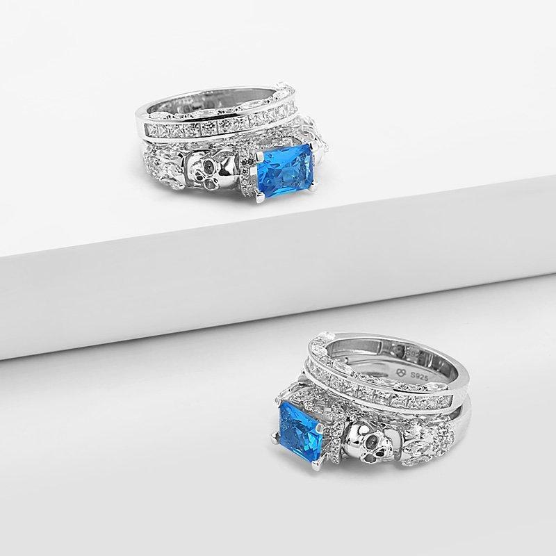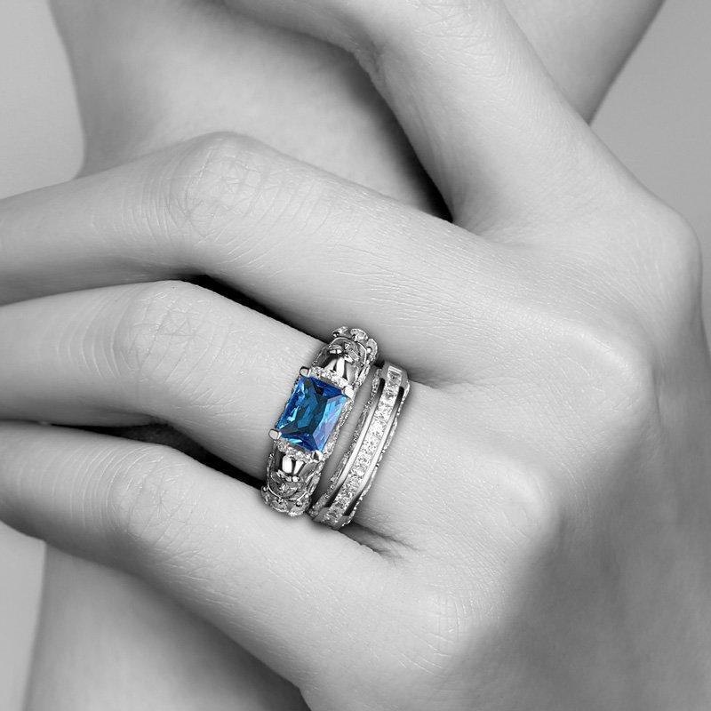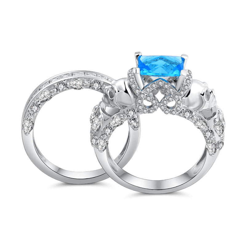 Conjunto De Anillos De Boda Corazón De Océano Femenino En Plata De Ley 925