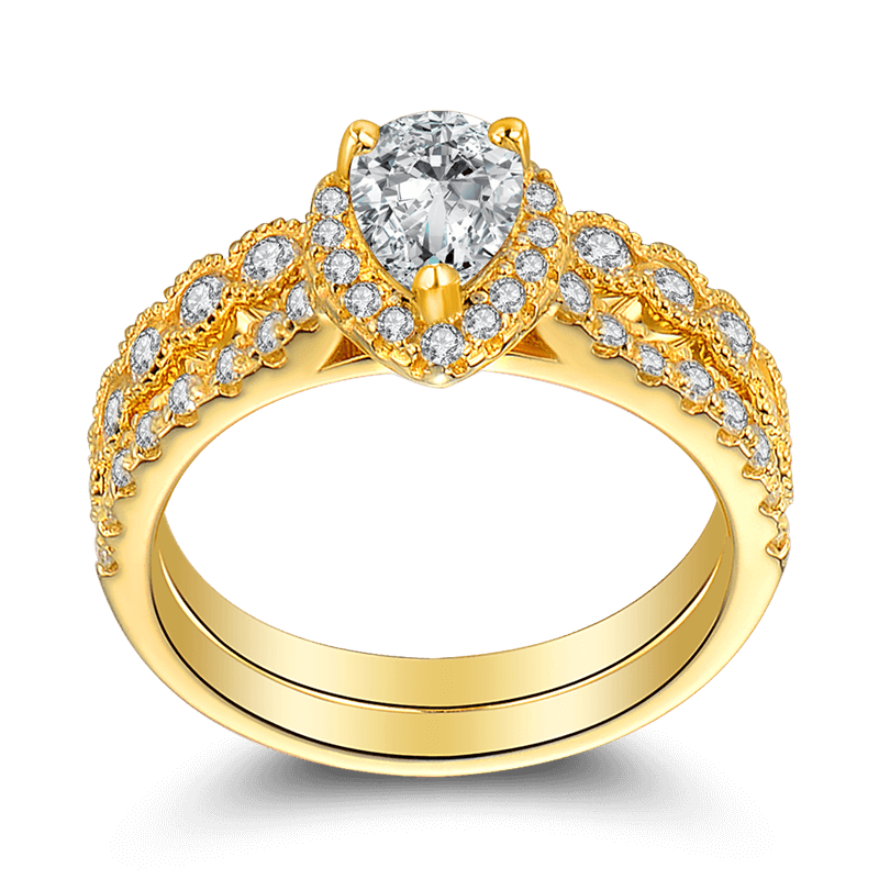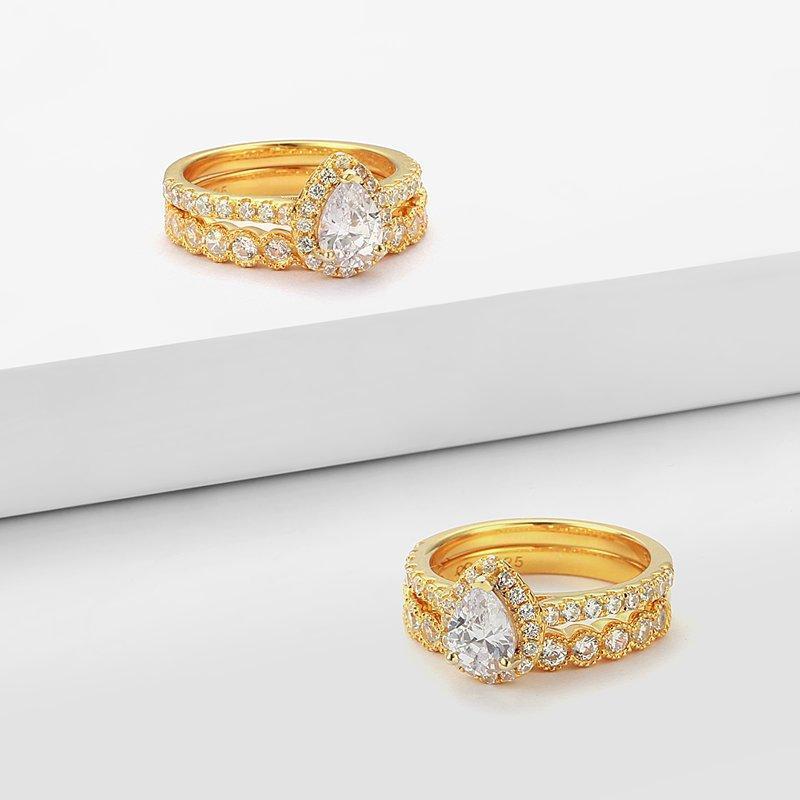 Conjunto De Anillos De Boda De Nobleza Femenina De Plata De Ley 925 Chapada En Oro De 14 K