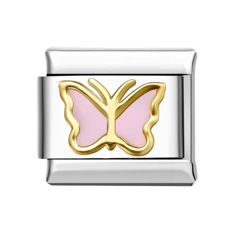 Charm Italiano Rosa Borde Dorado Mariposa Para Pulseras Italianas Charm Composable Link