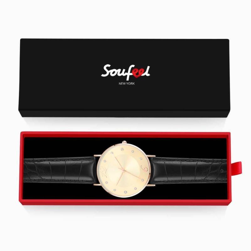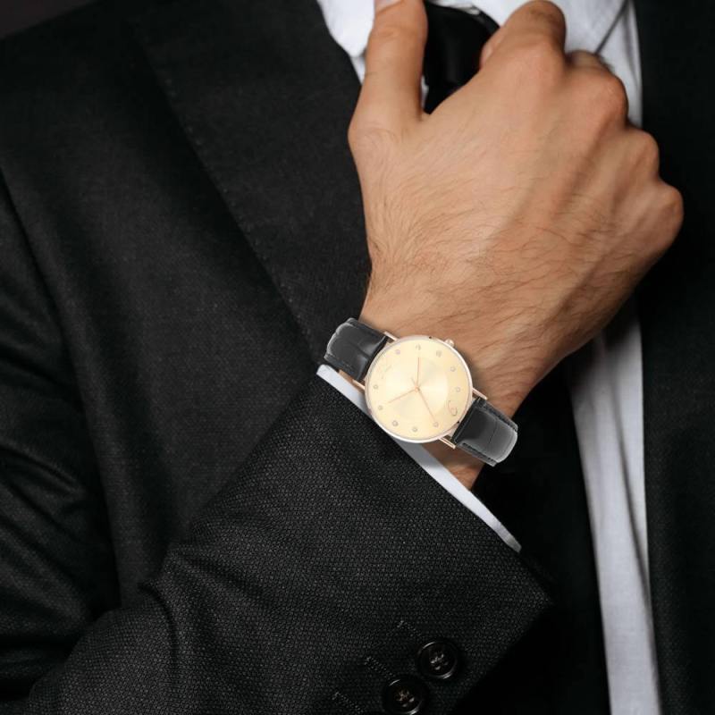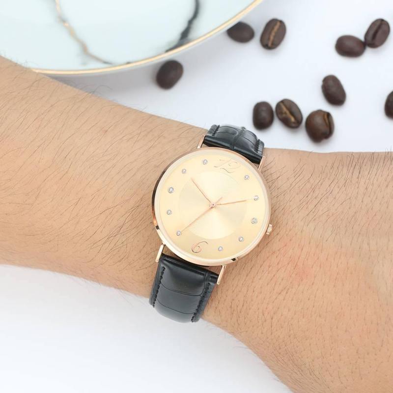 Reloj Con Esfera Dorada Correa De Cuero Negra De Cuarzo De Moda - Hombres