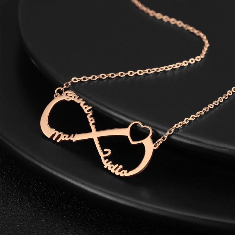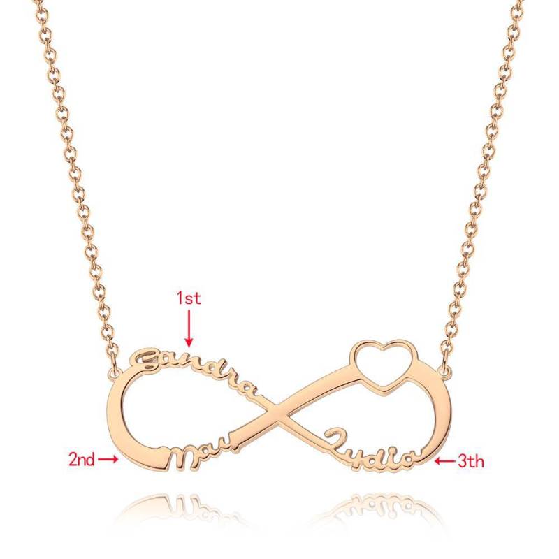 Collar Con Nombre Infinito, Regalo De Tres Nombres Para Amiga Chapado En Oro Rosa - Oro Rosa