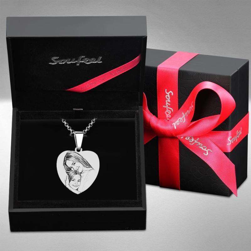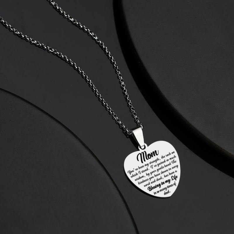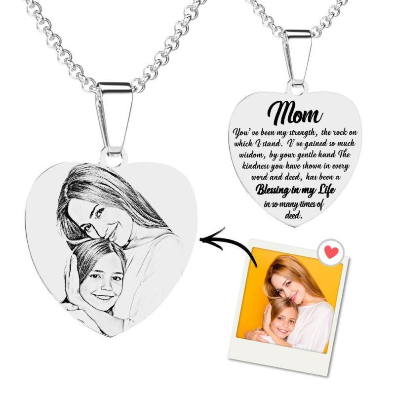 Collar De Etiqueta Con Foto Grabada En Forma De Corazón Con Grabado De Acero Inoxidable Para Mamá