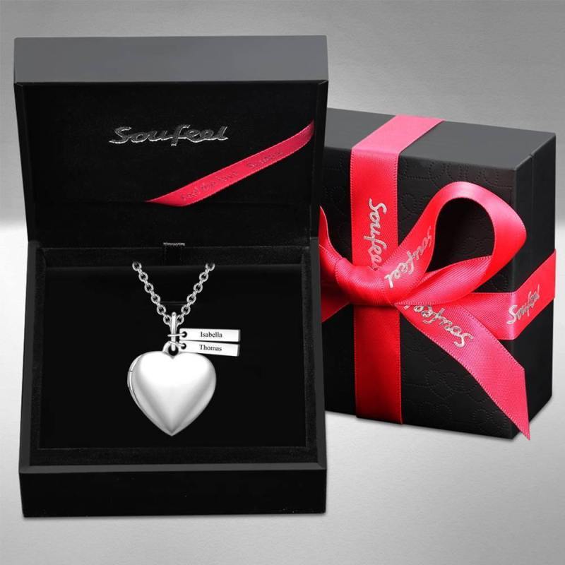 Collar Con Foto Corazón Y Dos Barras Grabadas Chapado En Platino