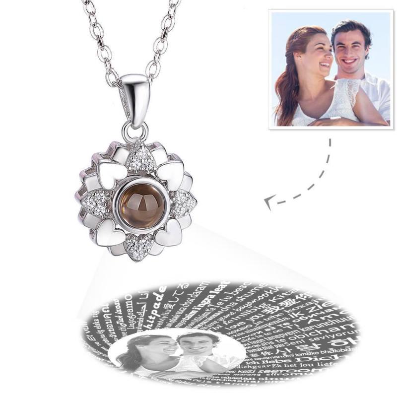 Collar I Love You En 100 Idiomas Collar Con Foto Grabada, Trébol De Cuatro Hojas Plata