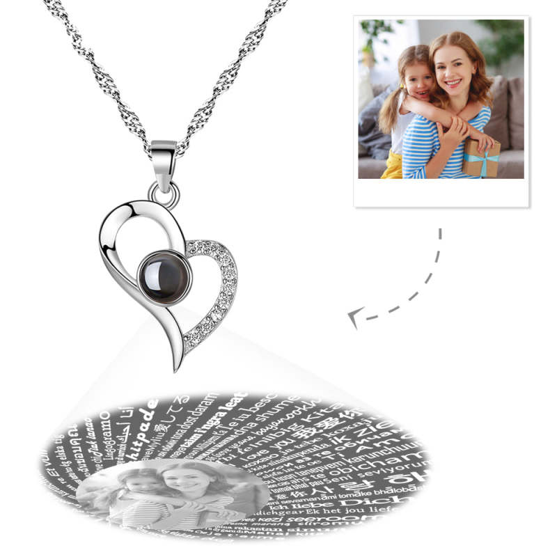 Collar Te Amo En 100 Idiomas Collar Con Foto De Proyección Amo Tu Corazón Plata Para Mamá