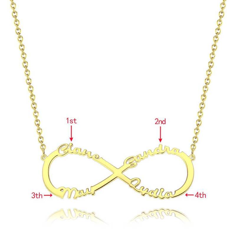 Collar Con Nombre Infinito, Regalo De Cuatro Nombres, Chapado En Oro 14K - Oro