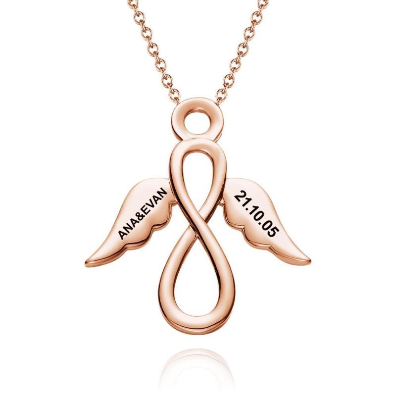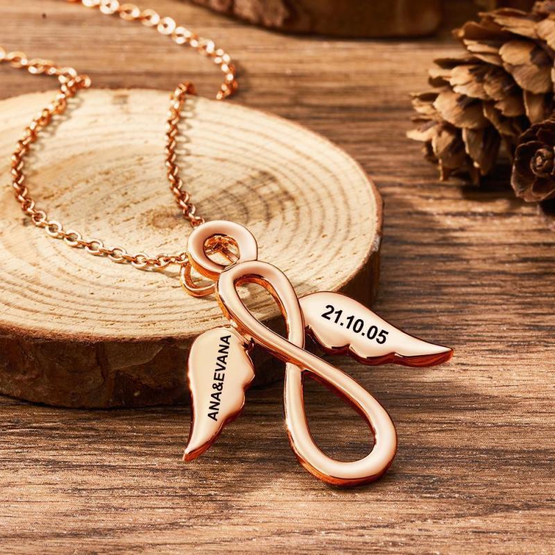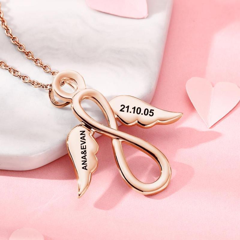 Collar Infinito Collar Grabado Con Alas Nombre Collar Love You Regalos Para Ella Chapado En Oro Rosa