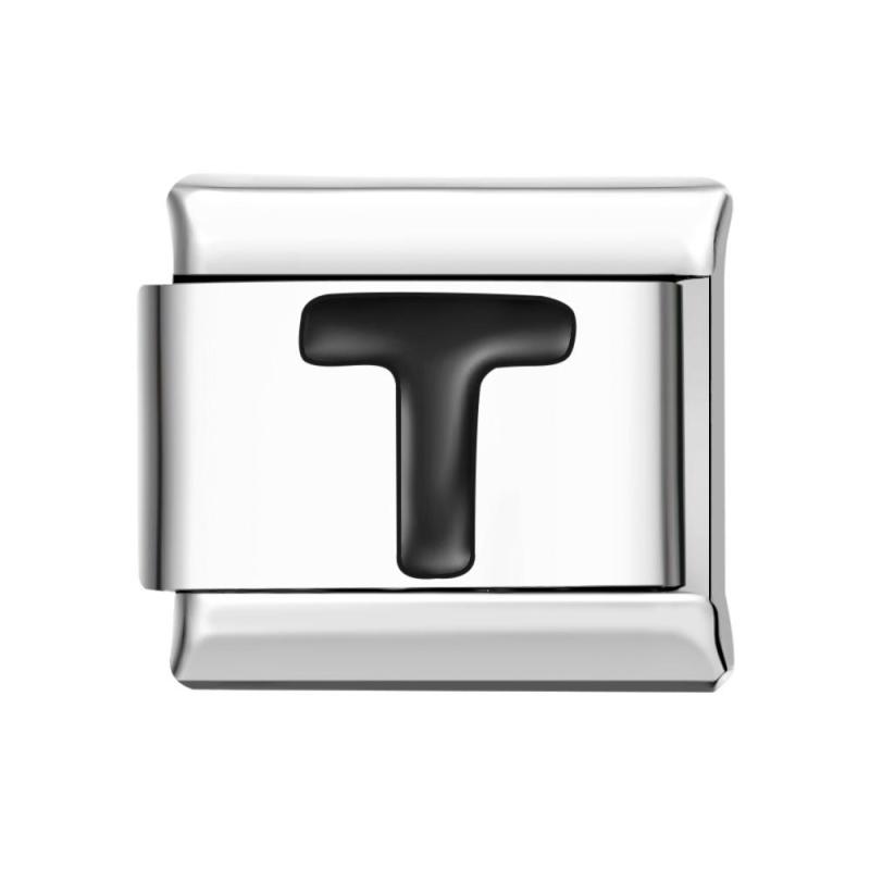 Charm Italiano Letra A-negro Para Pulseras Charm Italianas Link Composable