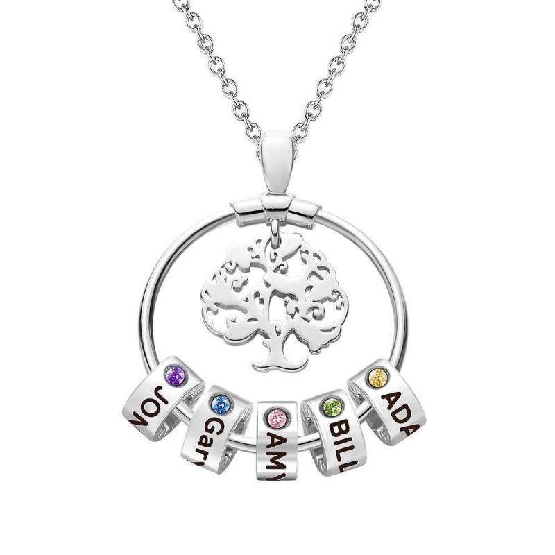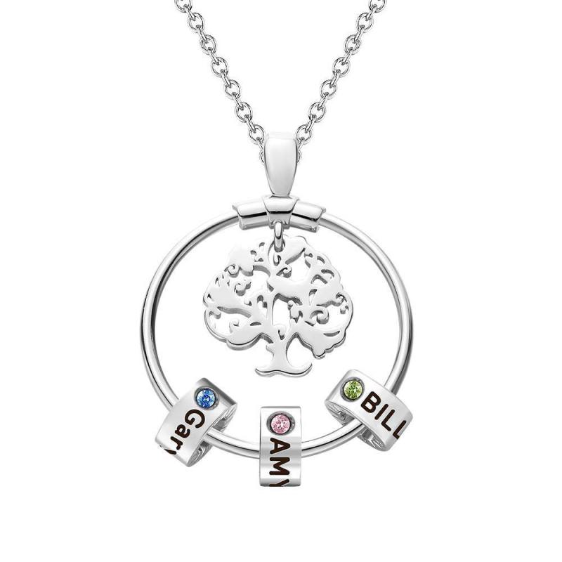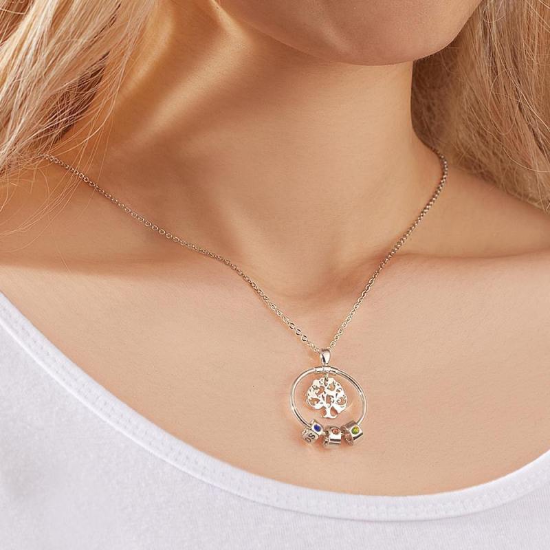 Collar De Árbol De La Vida Grabado Con Regalos De Una Piedra De Nacimiento Personalizada - Plata