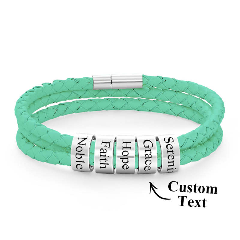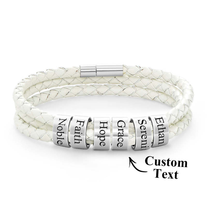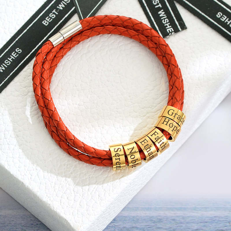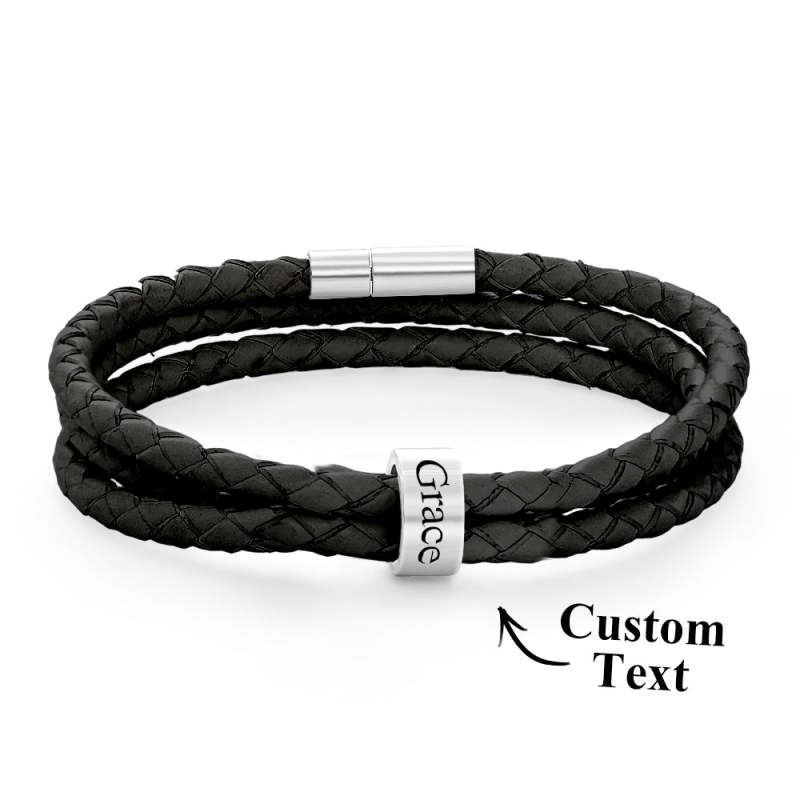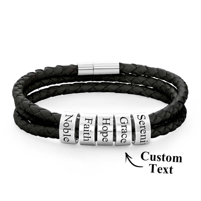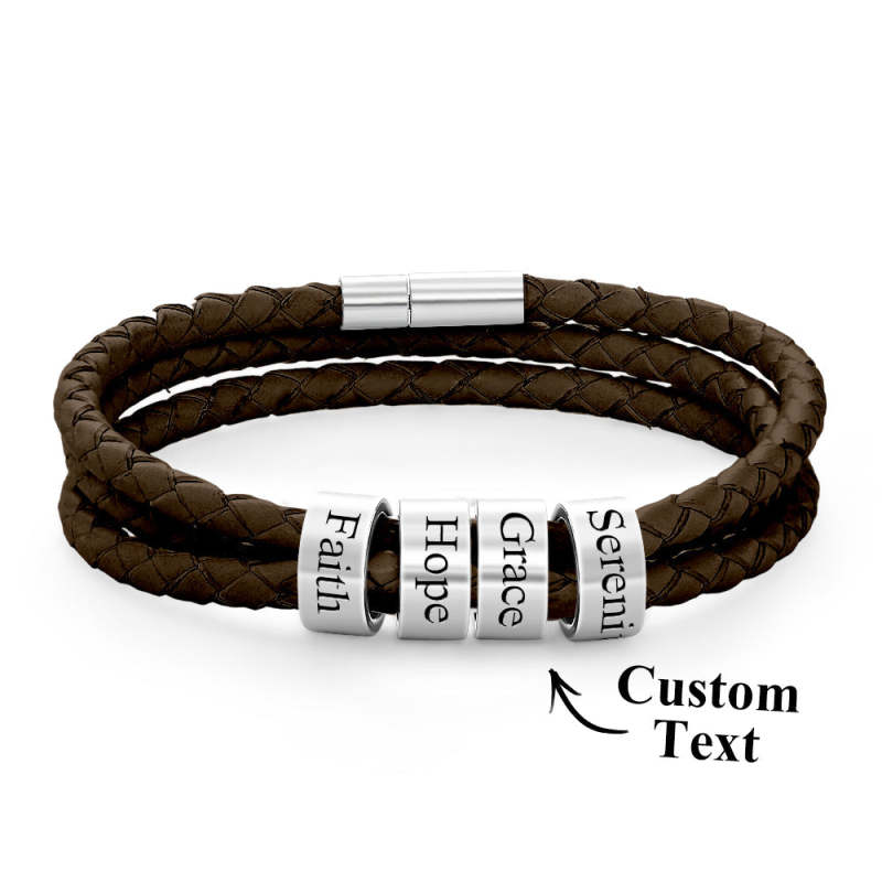 Pulsera Hombre De Cuero Trenzado Con Pequeñas Cuentas Personalizadas