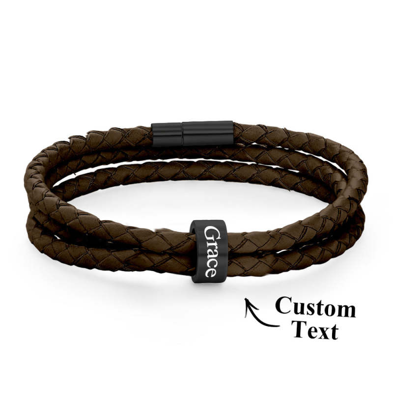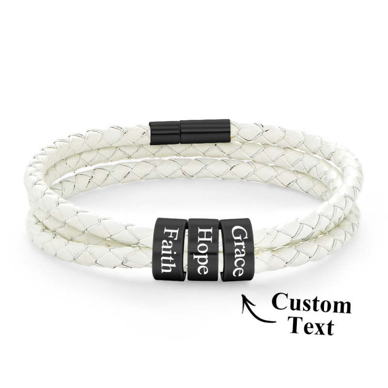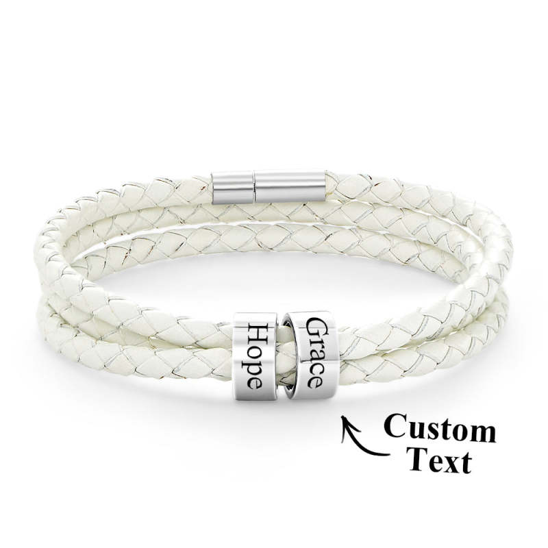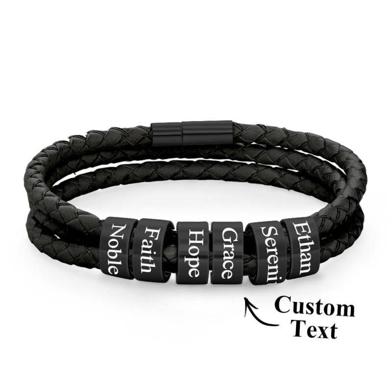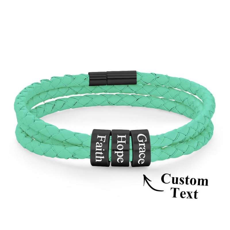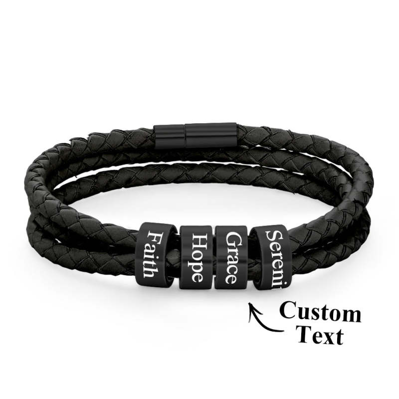 Pulsera Hombre De Cuero Trenzado Con Pequeñas Cuentas Personalizadas