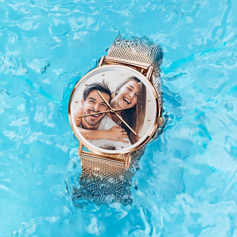 Reloj Con Foto De Pulsera De Aleación De Oro Rosa Grabado Unisex 40 Mm