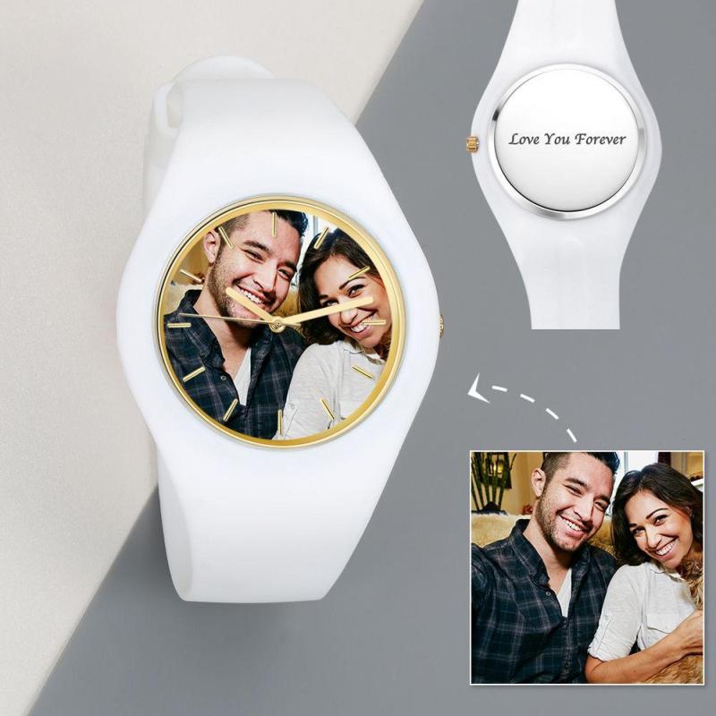 Hombre Reloj De Silicona Con Foto Grabable Reloj Con Grabado De Foto Para Hombre 41Mm Correa Blanca