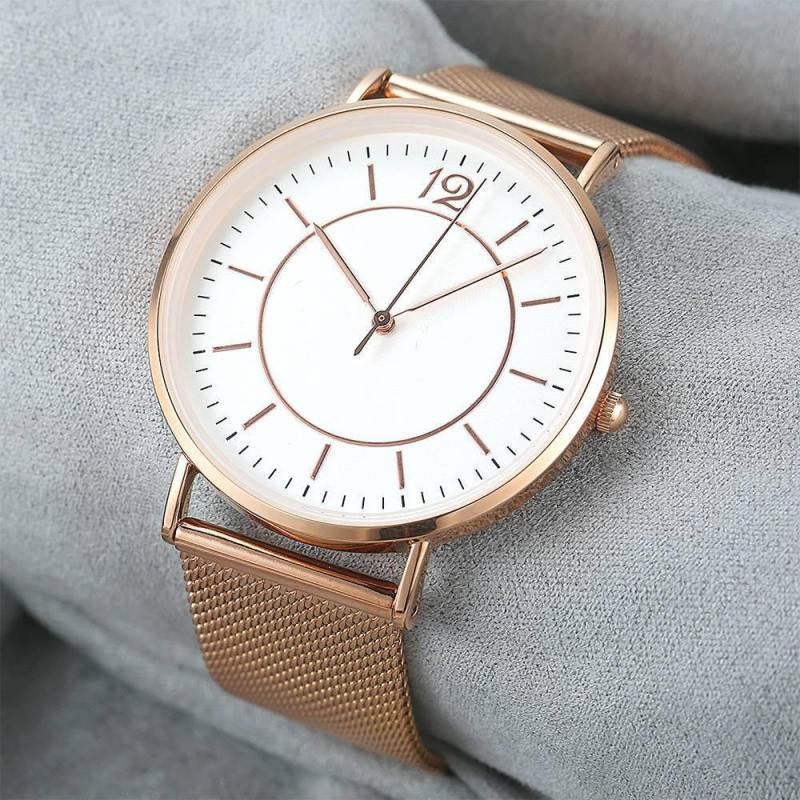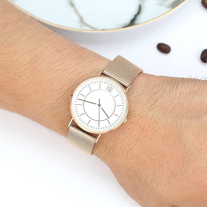 Reloj De Pulsera De Malla En Acero Inoxidable Con Correa De Oro Rosa Y Esfera Blanca - Hombre