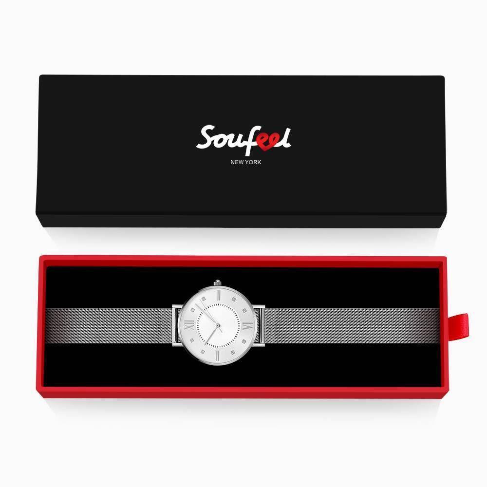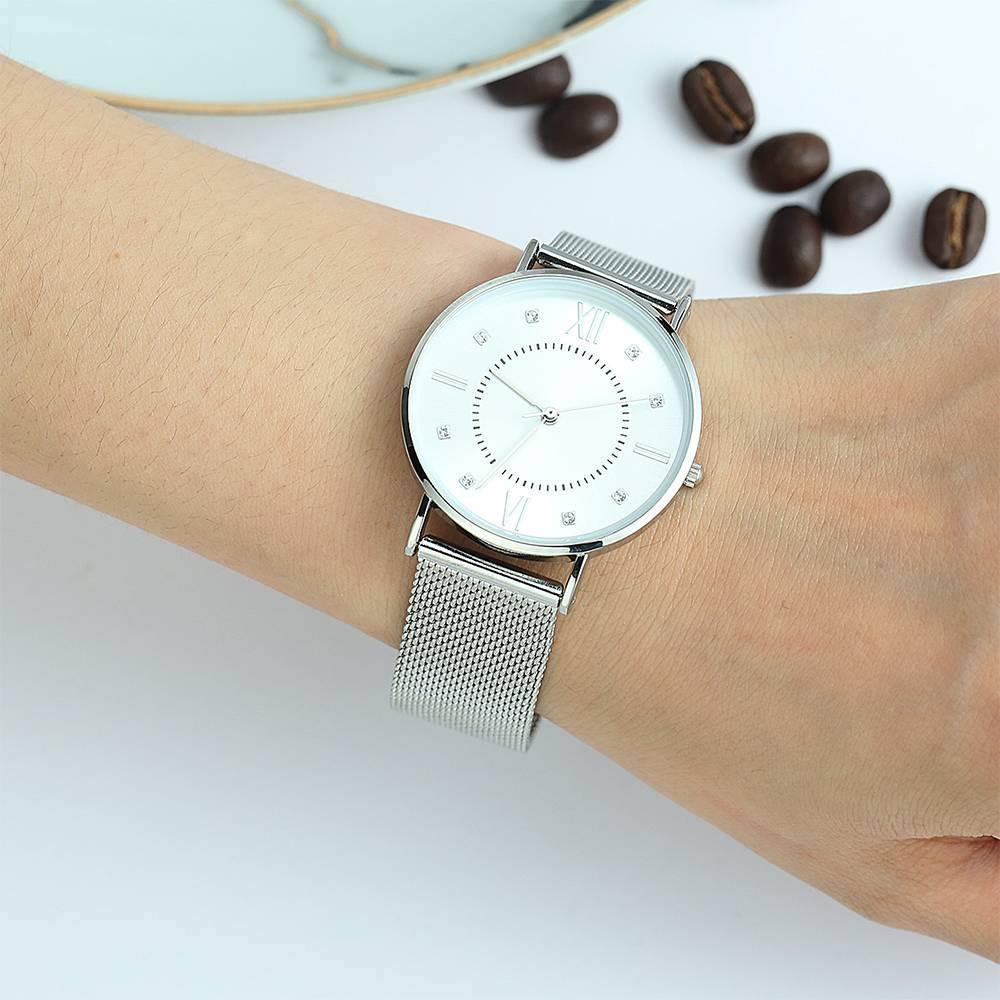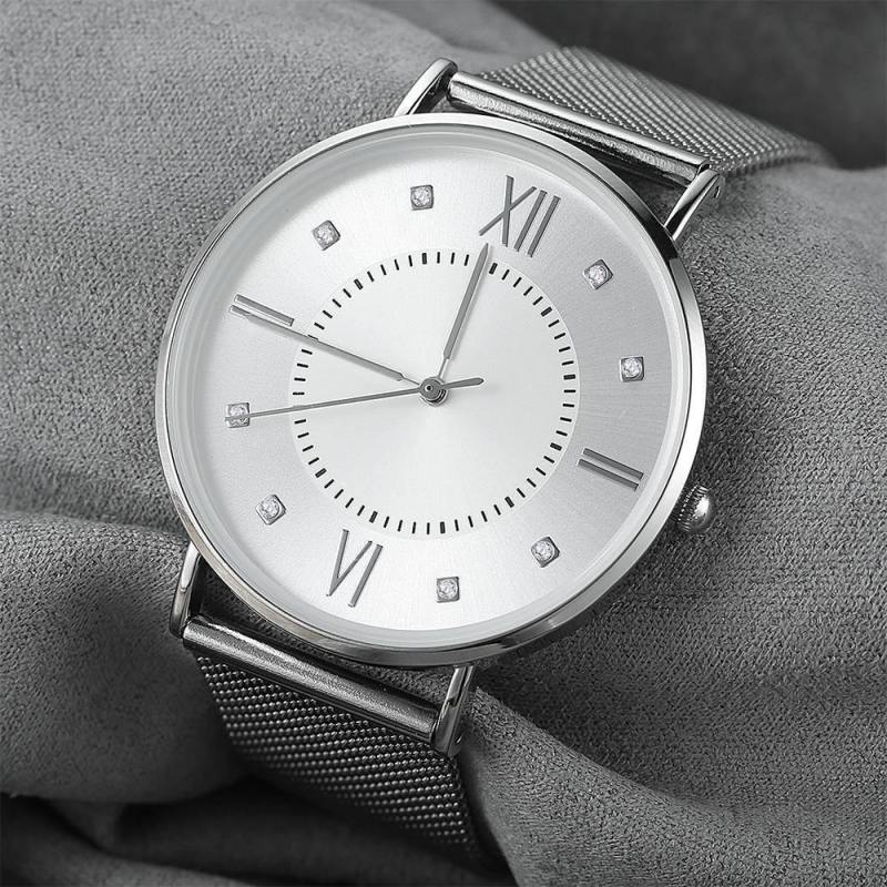 Reloj De Pulsera De Malla En Acero Inoxidable Plateado Y Blanco - Mujer