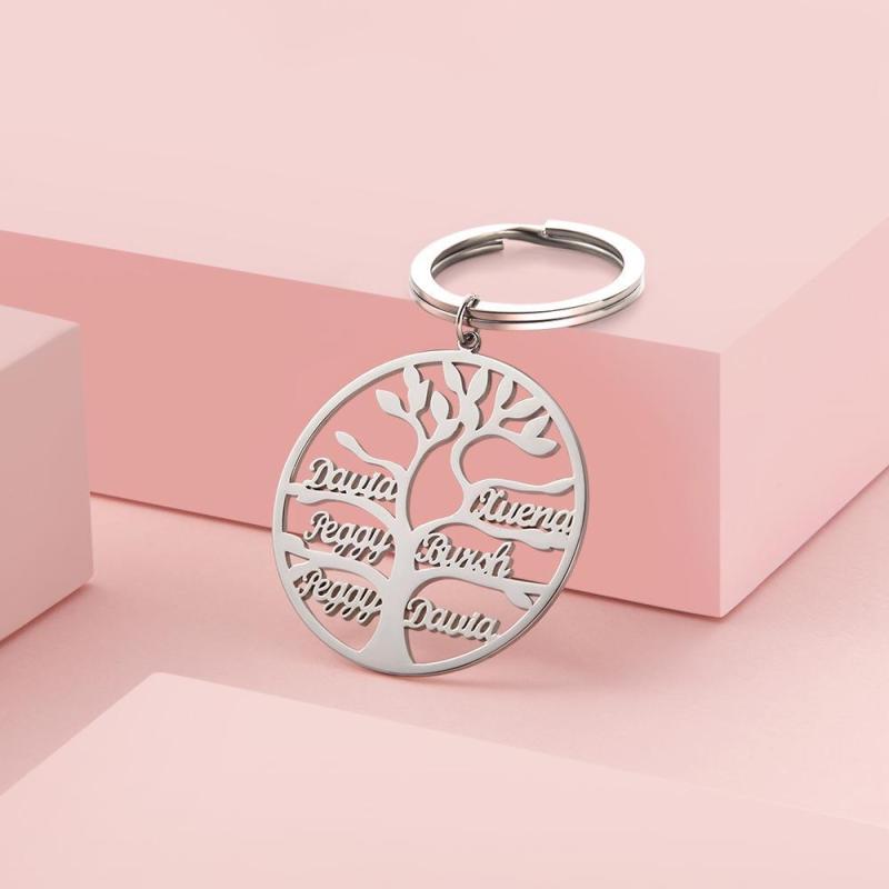 Llavero con nombre Llavero árbol genealógico Regalos para mujeres 1-9 nombres