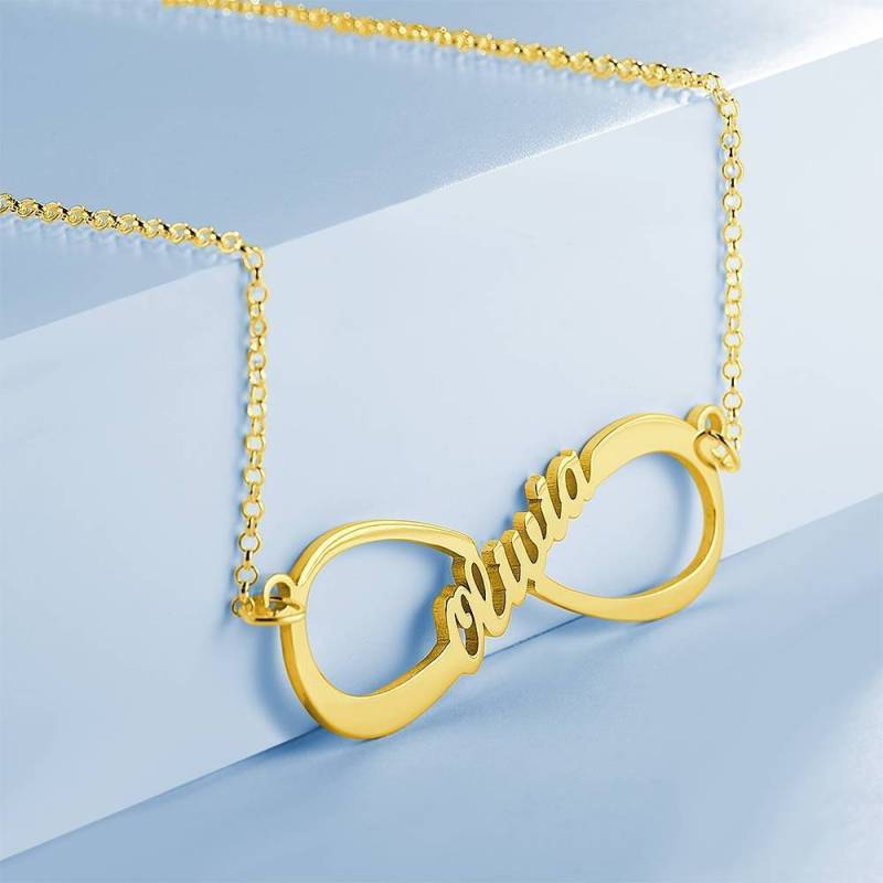 Collar Con Nombre, Collar Infinito Estilo Clásico Plateado En Oro 14K - Plata