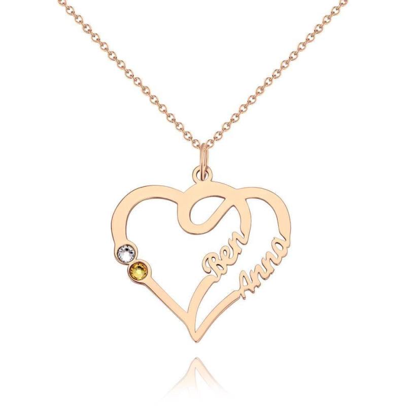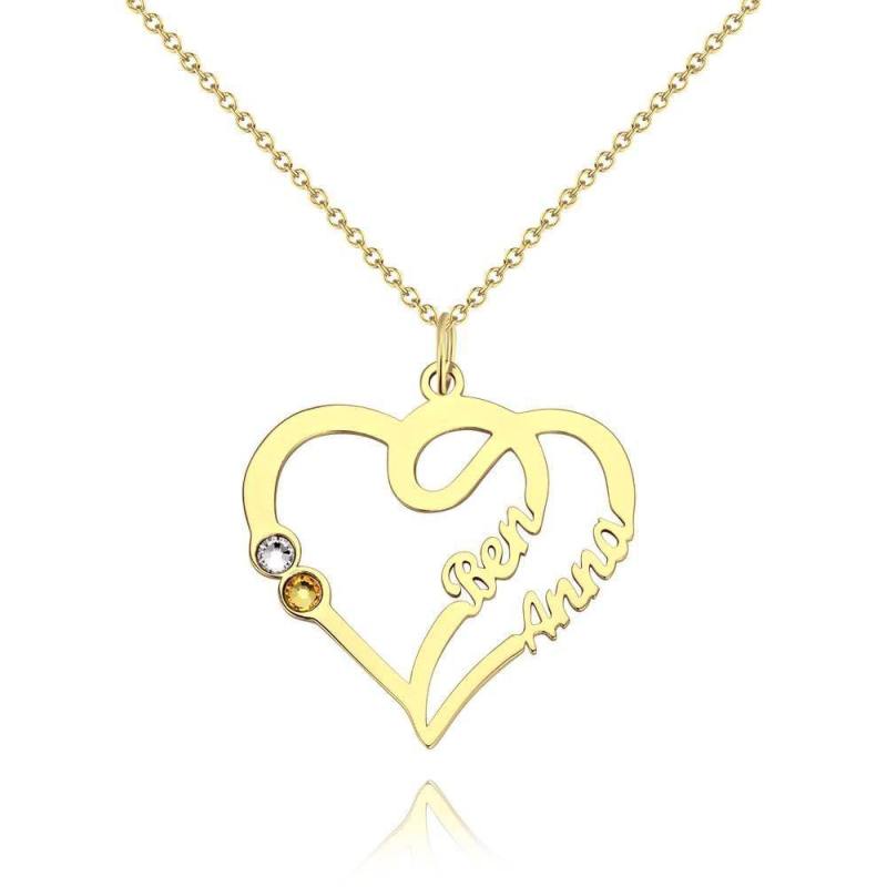 Collar Con Nombre, Dos Nombres Con Piedras De Nacimiento Personalizadas Ba?Ado En Oro De 14K - Plata