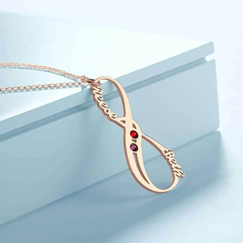 Collar Con Nombre Y Piedra De Nacimiento Collar Infinito Regalo ?Nico Chapado En Oro Rosa - Plata