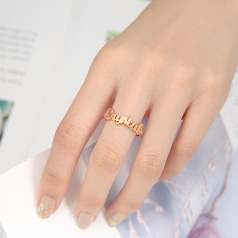 Anillos Con Nombre, Regalo Personalizado Para Ella Chapado En Oro Rosa