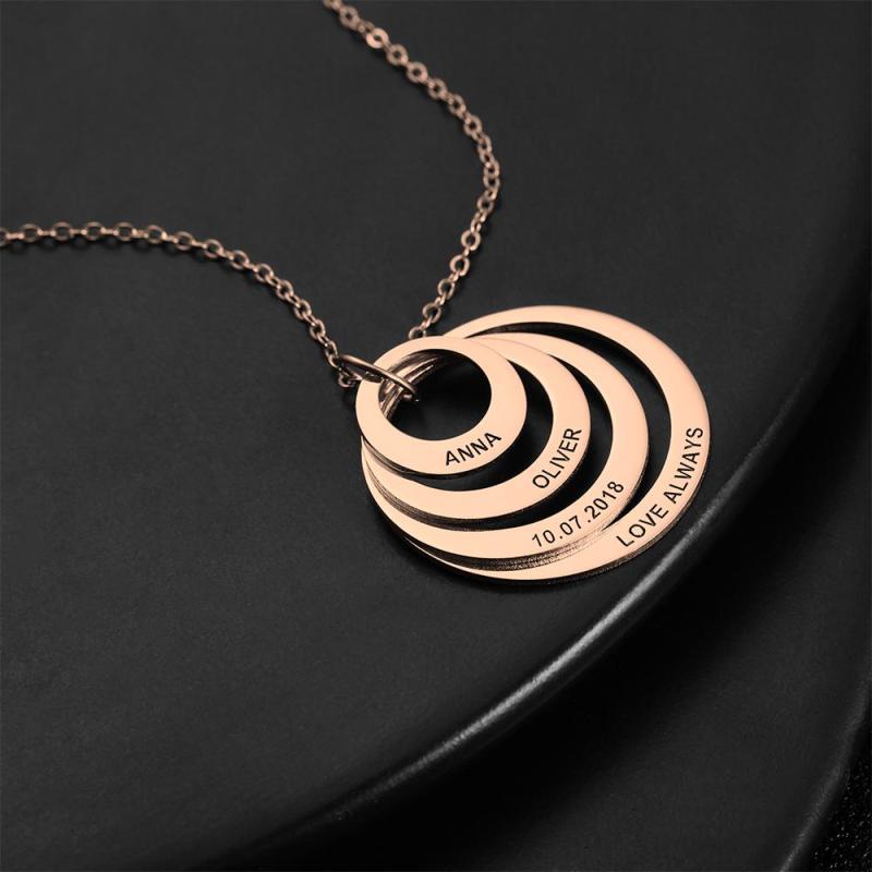 Collar Personalizado Grabado, Collar Con Nombre De Cuatro Discos Chapado En Oro Rosa - Oro Rosa