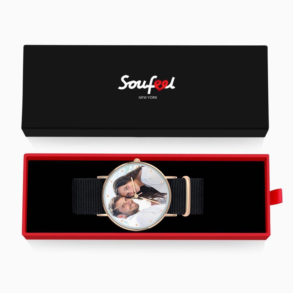 Reloj Grabado Personalizado, Reloj Fotográfico Con Correa Negra - Regalo Para Novio