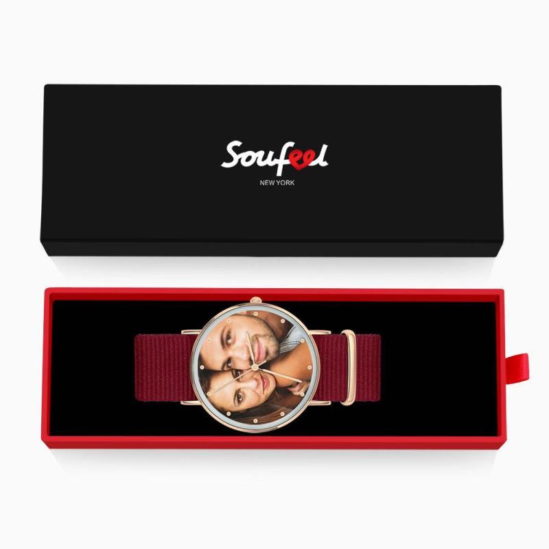 Reloj Con Grabado Personalizado, Reloj Con Foto Con Correa Roja - Regalo Para Novio