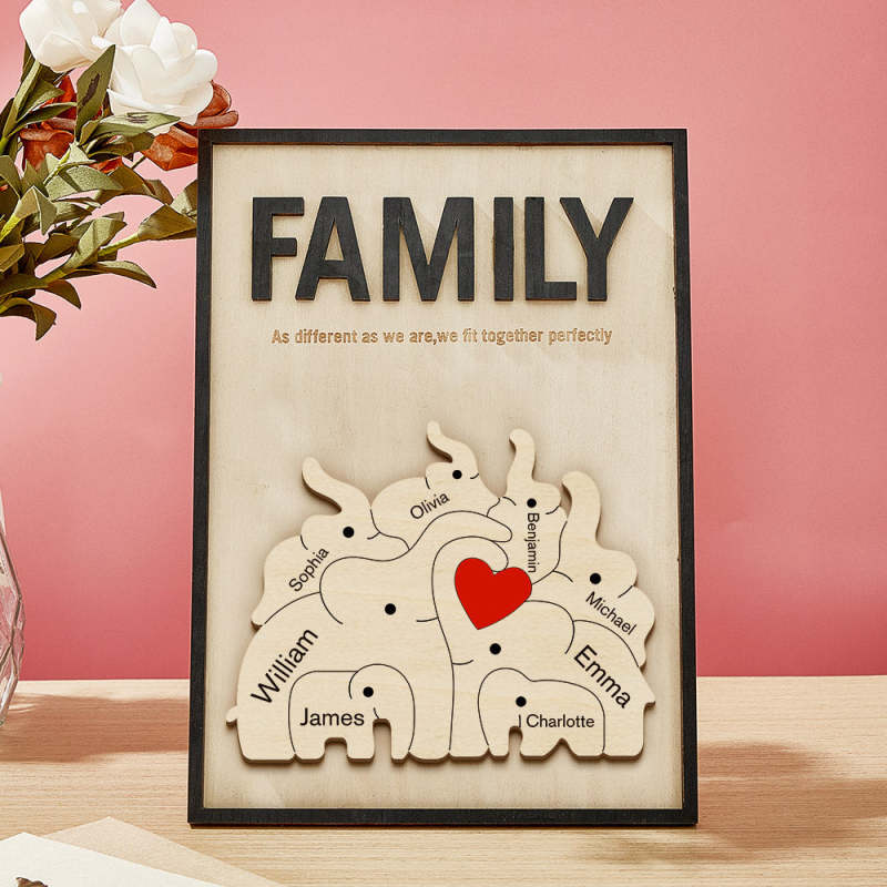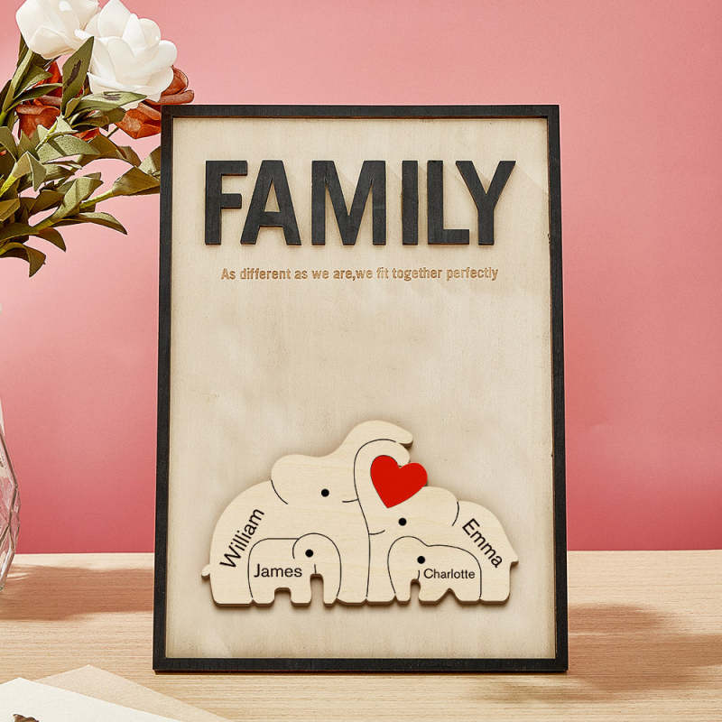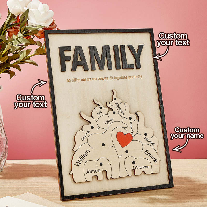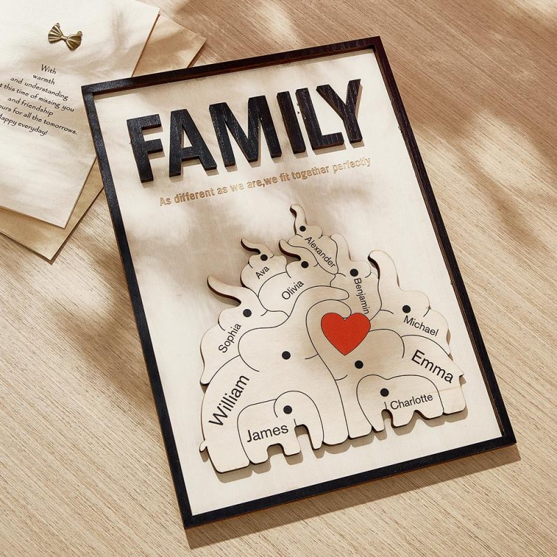 Placa De Madera Personalizada Con Elefante Familiar, Signo De Nombre De Miembro De La Familia Personalizado, Regalo Para Mamá