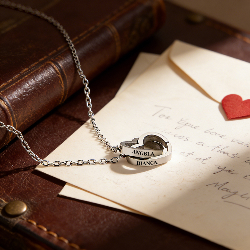 Collar De Corazón Personalizado Con Caja De Rosa Eterna, Collar Con Nombre Personalizado Y Juego De Regalo De Rosa Eterna, Collar Con Nombre De Corazón A Corazón