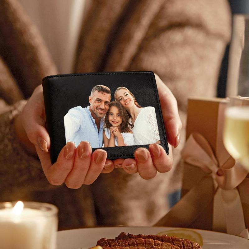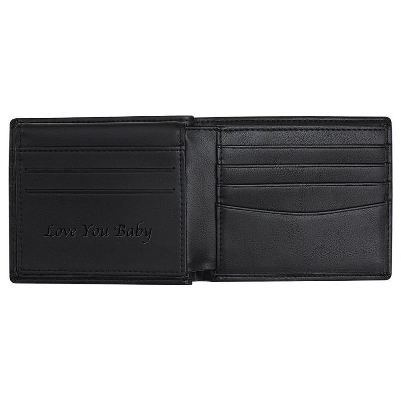 Cartera De Cuero Personalizada Cepillo Antirrobo Cartera Protegida Rfid Cartera De Retrato Personalizada Para Hombre -Negro