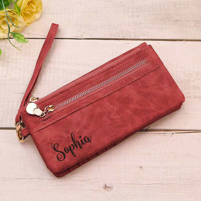 Cartera De Cuero Personalizada Con Pulsera, Cartera De Texto Personalizada, Regalo De Dama De Honor De Cumpleaños Para Ella