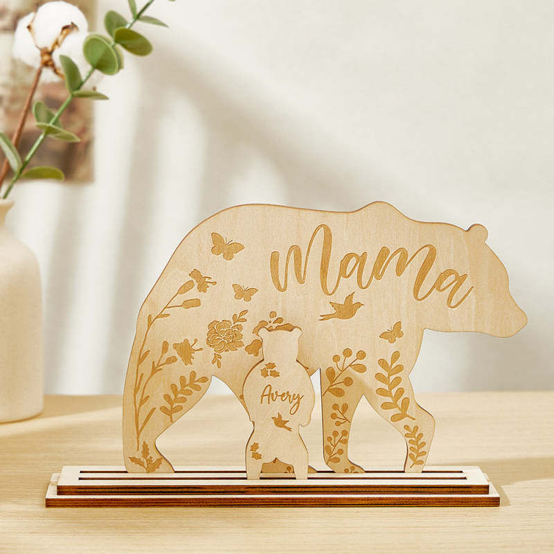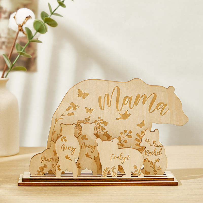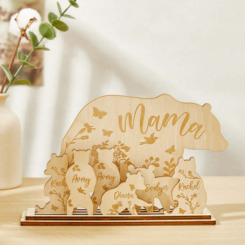 Regalo Personalizado De Decoración De Escritorio De Madera De Mamá Oso Con Cachorros Para Mamá