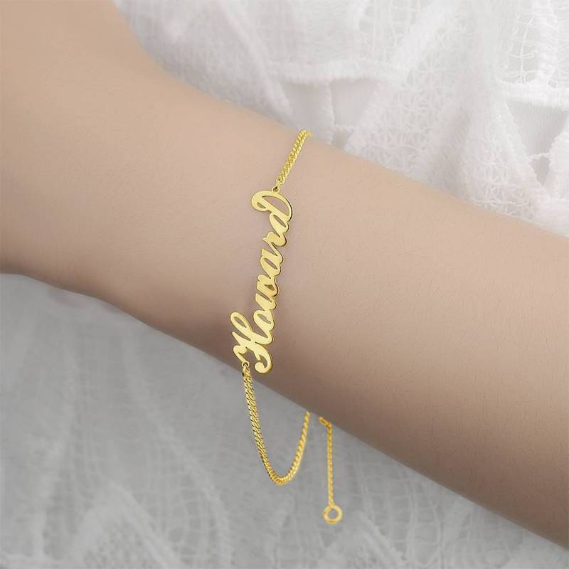 Pulsera Nombre Personalizada Pulsera con Cualquier Nombre Dorado Chapado En Oro De 14k