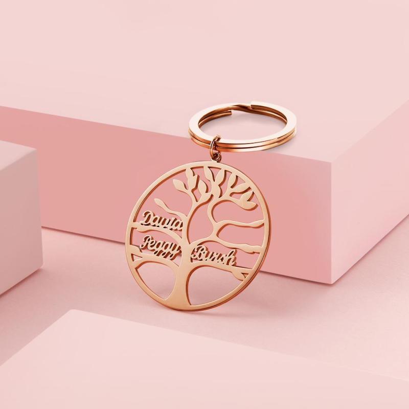 Llavero personalizado con nombre rbol de la vida Llavero chapado en oro rosa 1-9 nombres