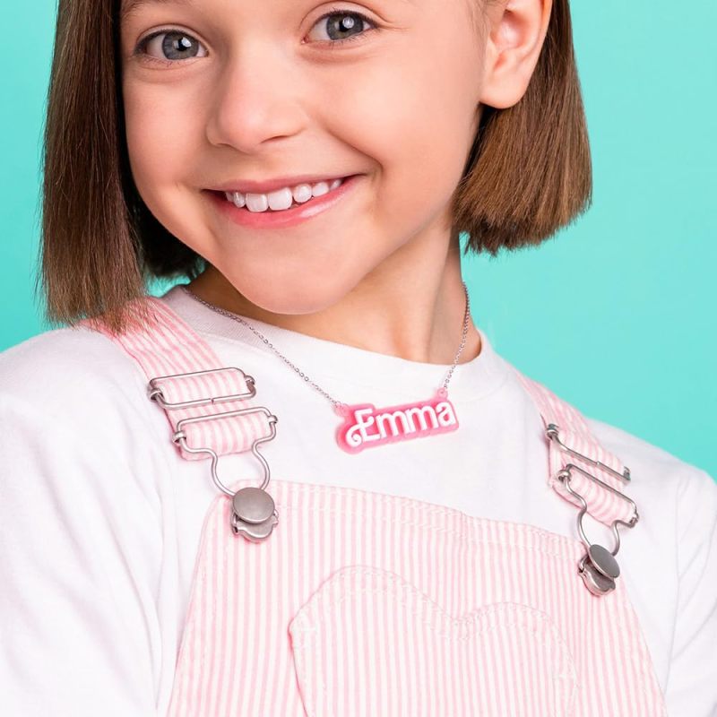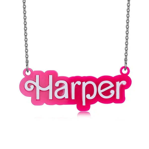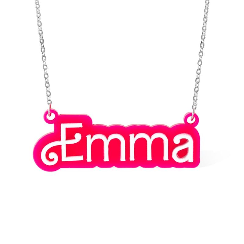 Collar Acrílico Personalizado De Muñeca Barbi Rosa Y Blanco Con Nombre, Cumpleaños, Día De San Valentín Para Ella