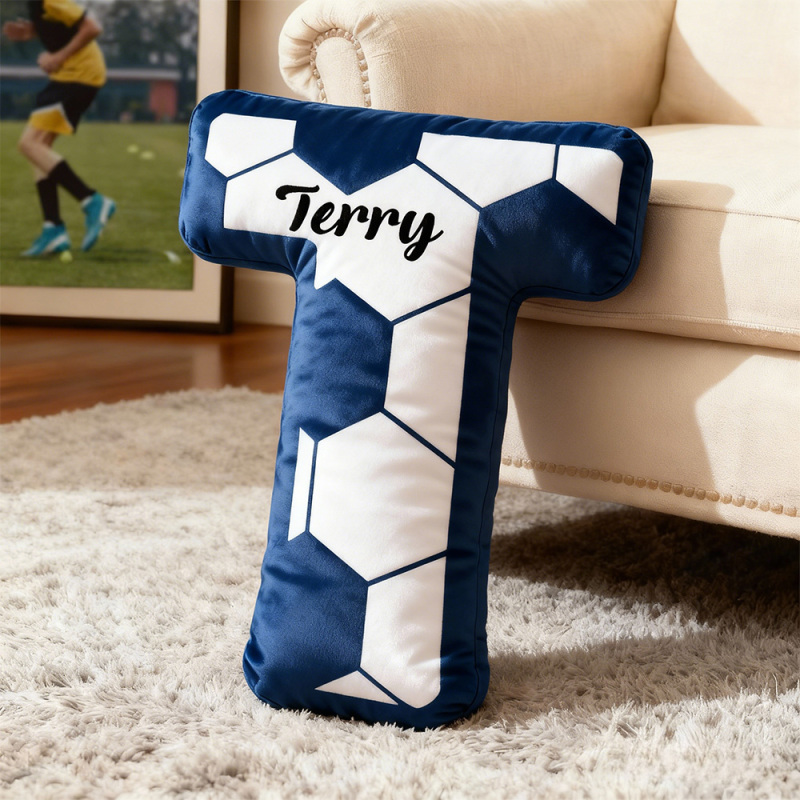 Cojín Personalizado Con Inicial De Balón De Fútbol, cojín Deportivo Con Monograma Personalizado, Cojín Decorativo Con Temática De Fútbol, regalo