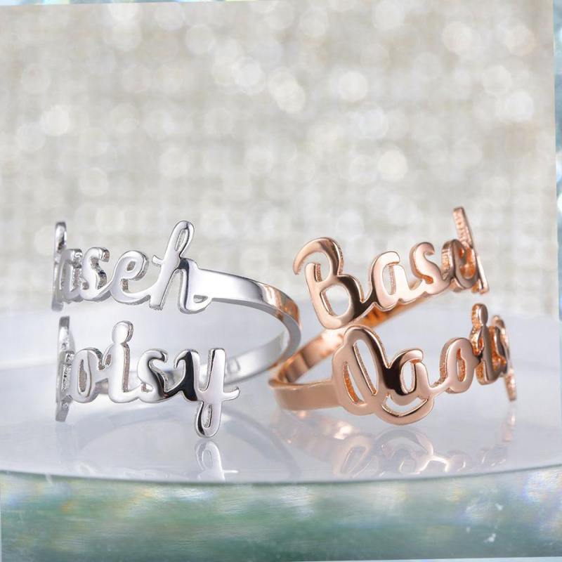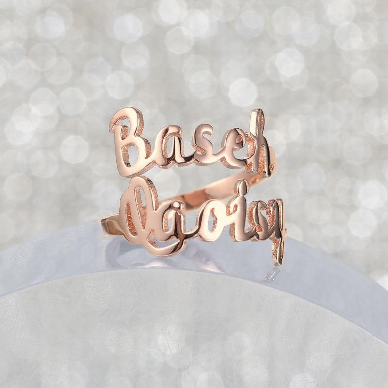 Anillo Personalizado De Dos Nombres Plateado Chapado En Oro Rosa