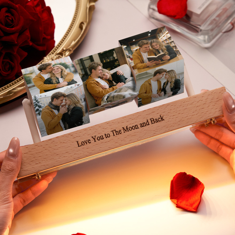 Cubos De Fotos De Madera Personalizados Sobre Soporte Collage De Bloques De Fotos Personalizados Con Base De Luz Led Opcional Tres Cubos De Fotos De Madera Giratorios