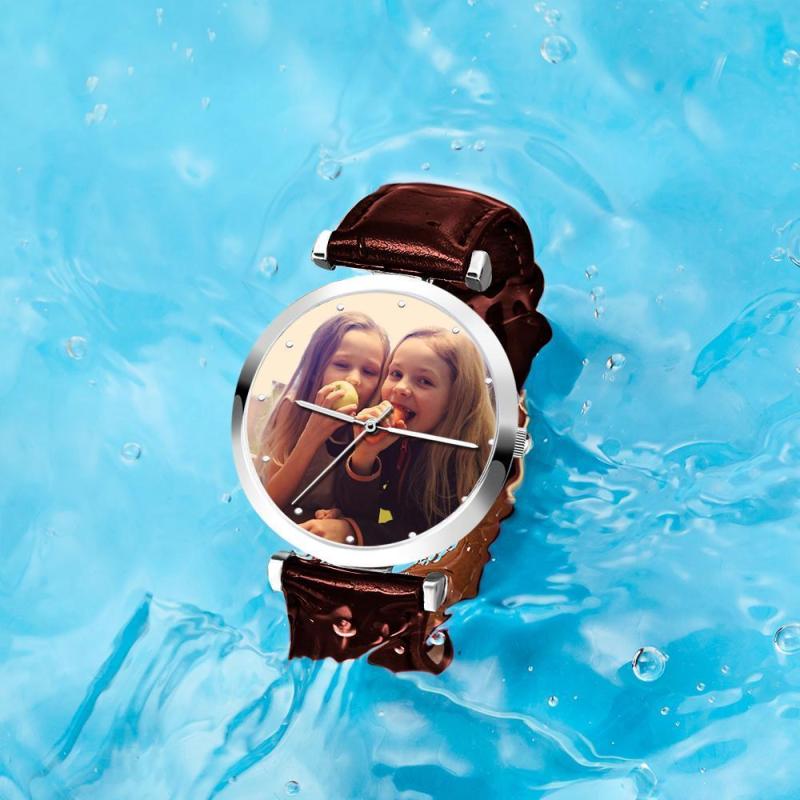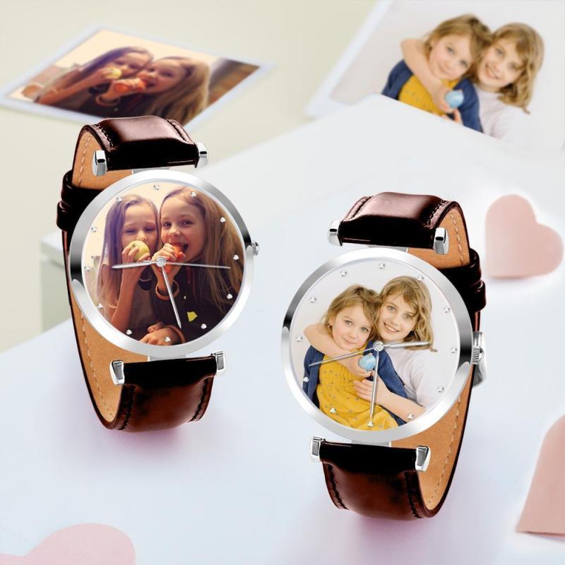 Reloj Con Foto Grabada Correa De Cuero Marrón Para Regalos Creativos Masculinos