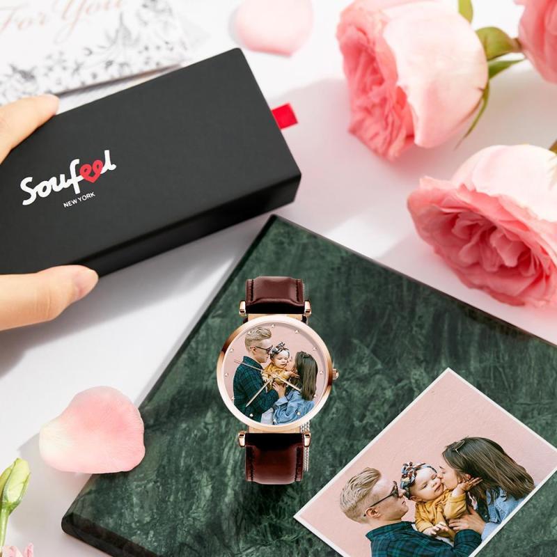 Reloj Con Foto Grabada Correa De Cuero Marrón Para Regalos Conmemorativos Masculinos