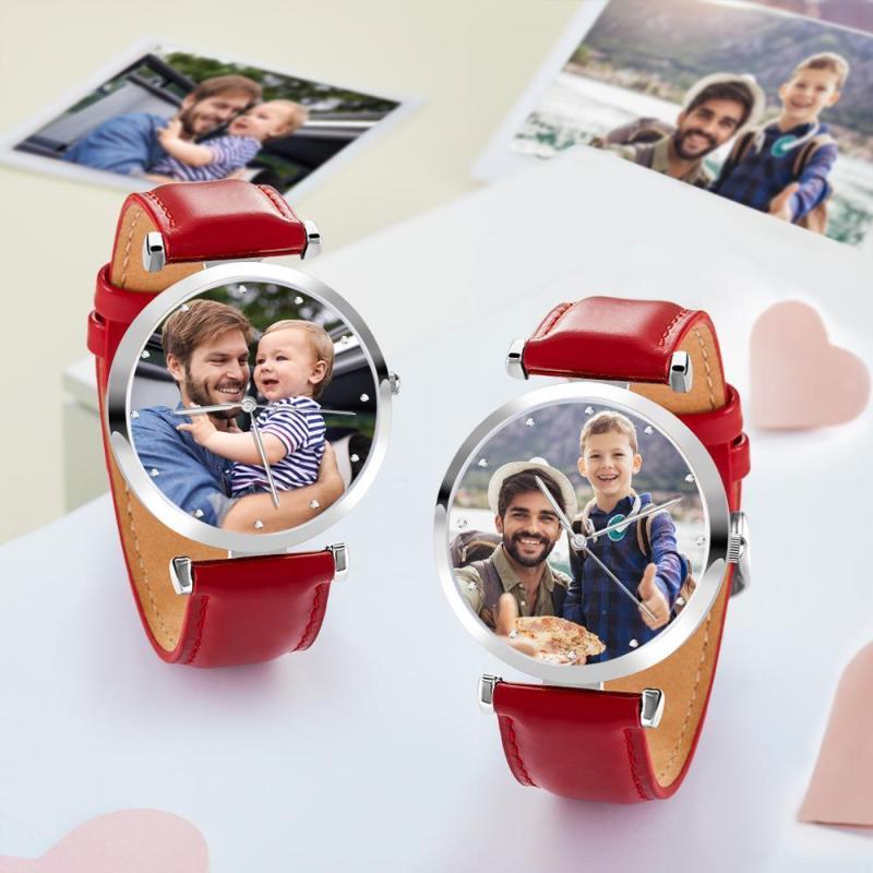 Reloj Con Foto Grabada Correa De Cuero Roja Regalos De Cumplea?Os Para Hombre