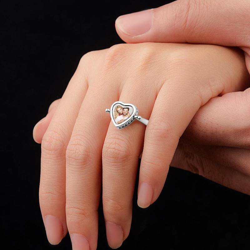 Collar Con Foto, Anillo Con Foto Regalos Para Parejas En Forma De Corazón Doble Uso (Tama?O Del Anillo 5 #) Plata