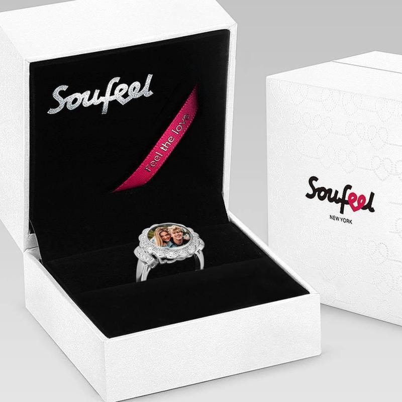 Anillo Fotográfico Foto Redonda Con Circón Regalo De La Madre Chapado En Platino