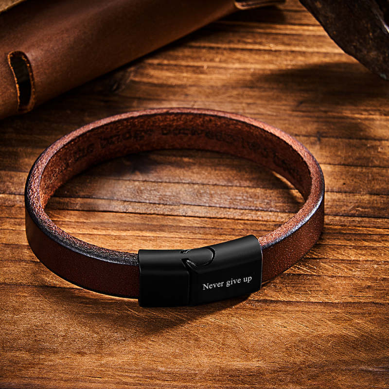 Pulsera De Cuero Simple Retro Con Pulsera De Hebilla Magnética De Texto Para Hombres