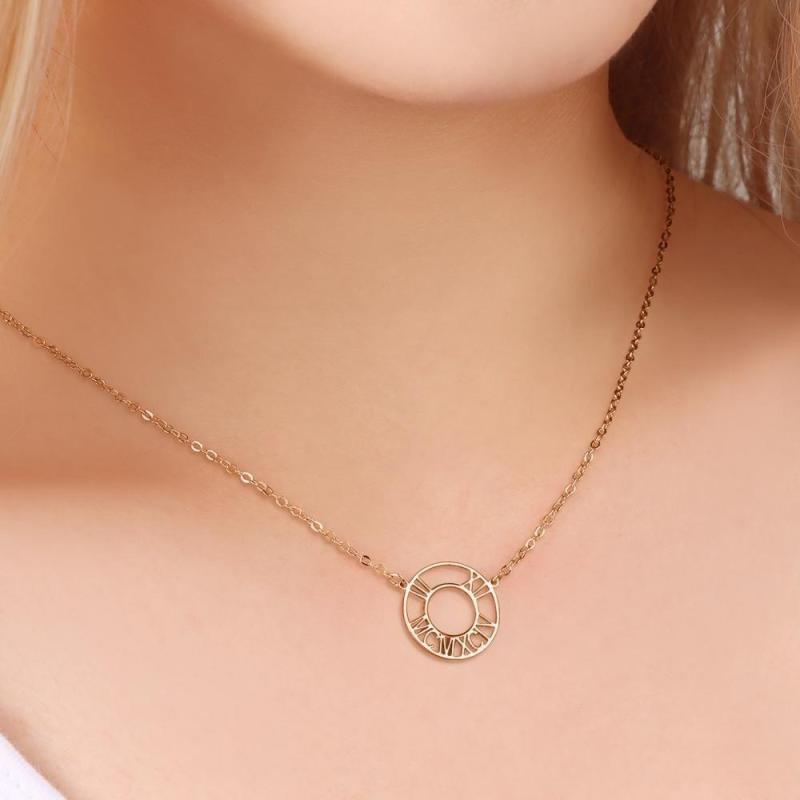 Collar Con Números Romanos Collar De Barra De Fecha Personalizada Chapado En Oro Rosa