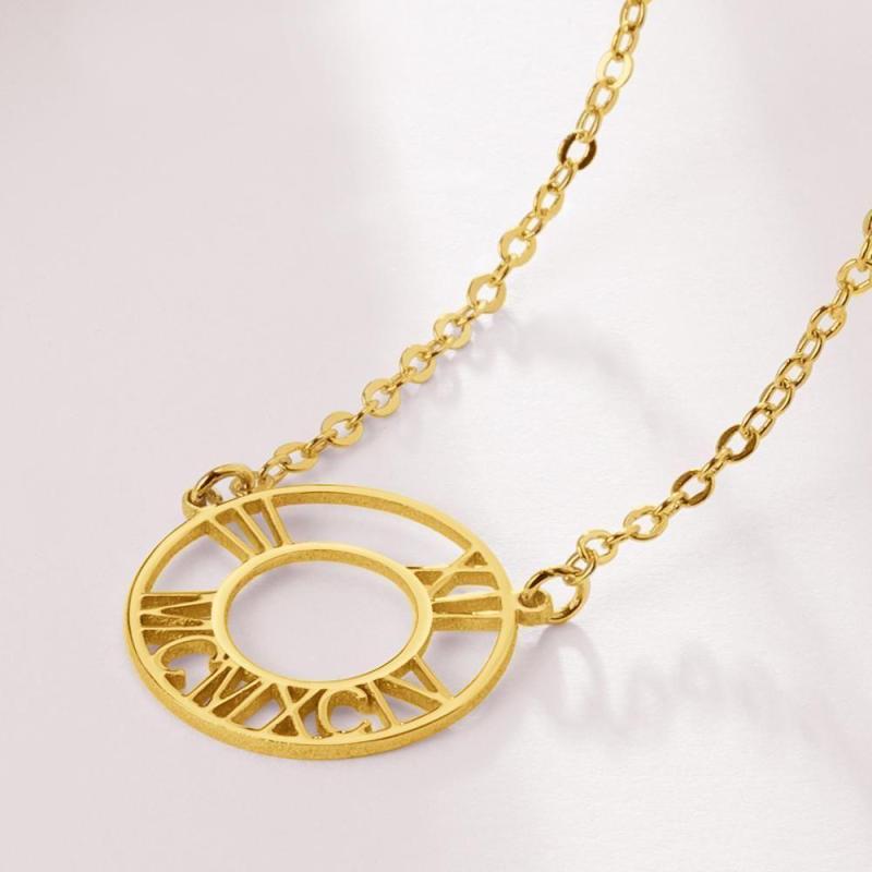 Collar Con Números Romanos Collar Con Fecha Personalizada Regalos Conmemorativos Chapado En Oro De 14K