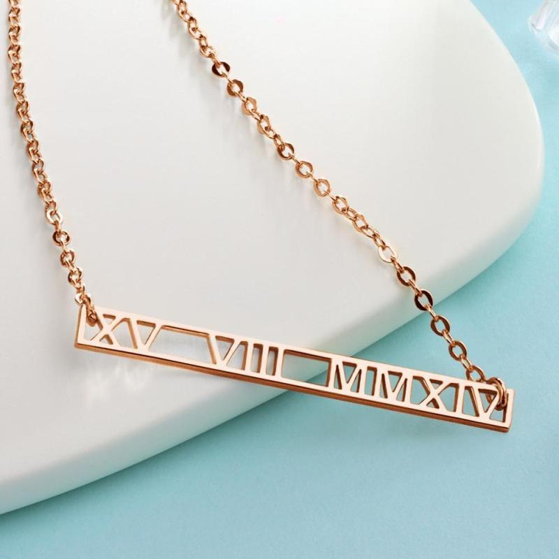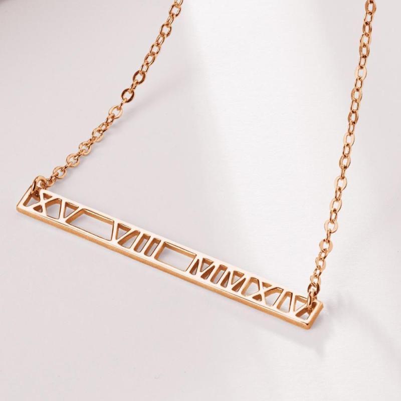 Collar Con Números Romanos Collar Con Fecha Personalizada Chapado En Oro Rosa