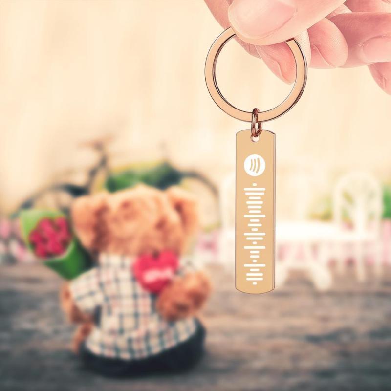 Llavero escaneable de código Música grabado de canción musical Regalos conmemorativos Color oro rosa