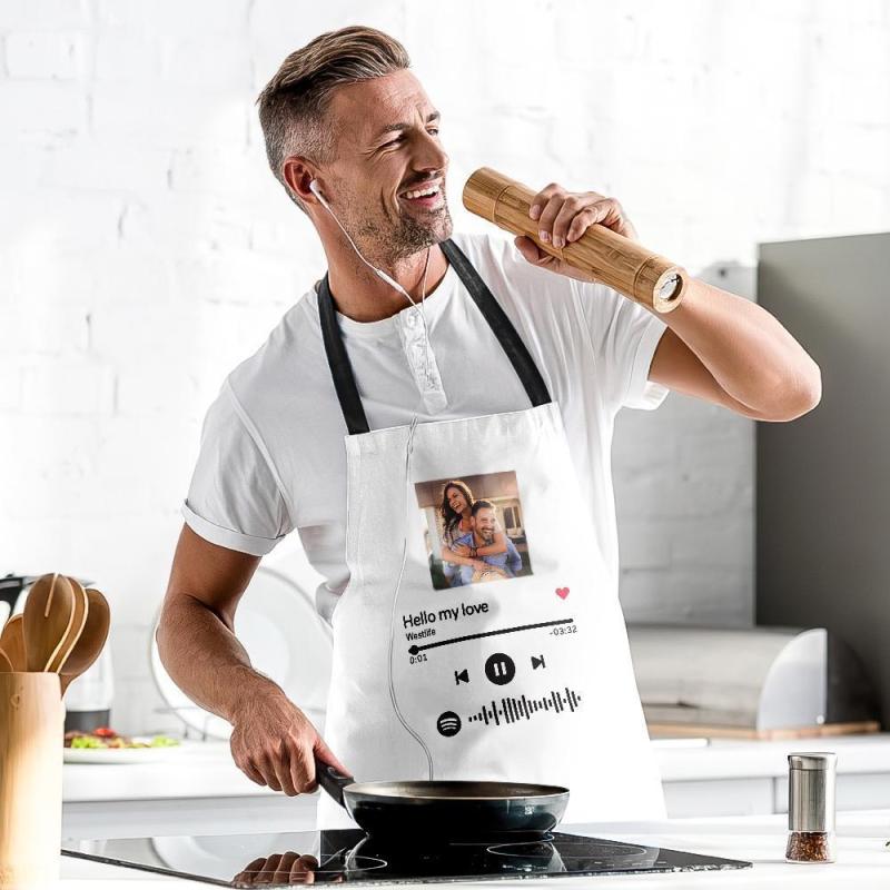 Scannable Música Code Apron Engraved Apron Waterproof Your Favorite Song Memorial Gifts White