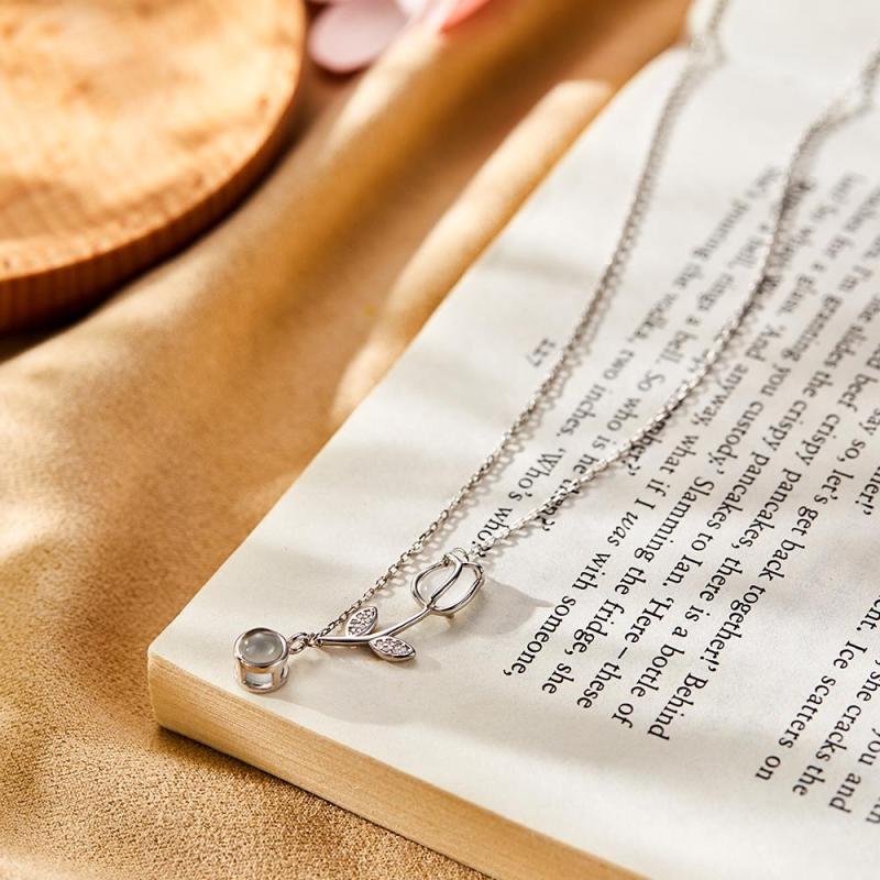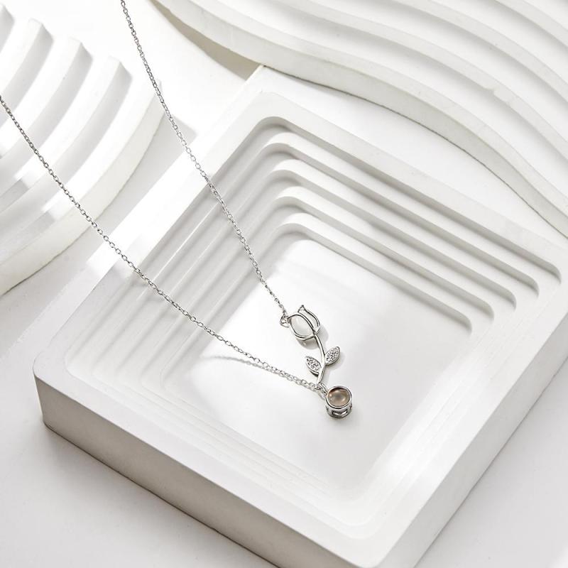 Collar De Proyección De Fotos De Tulipán, Colgante De Flor Elegante Personalizado, Regalo De Joyería Para Ella